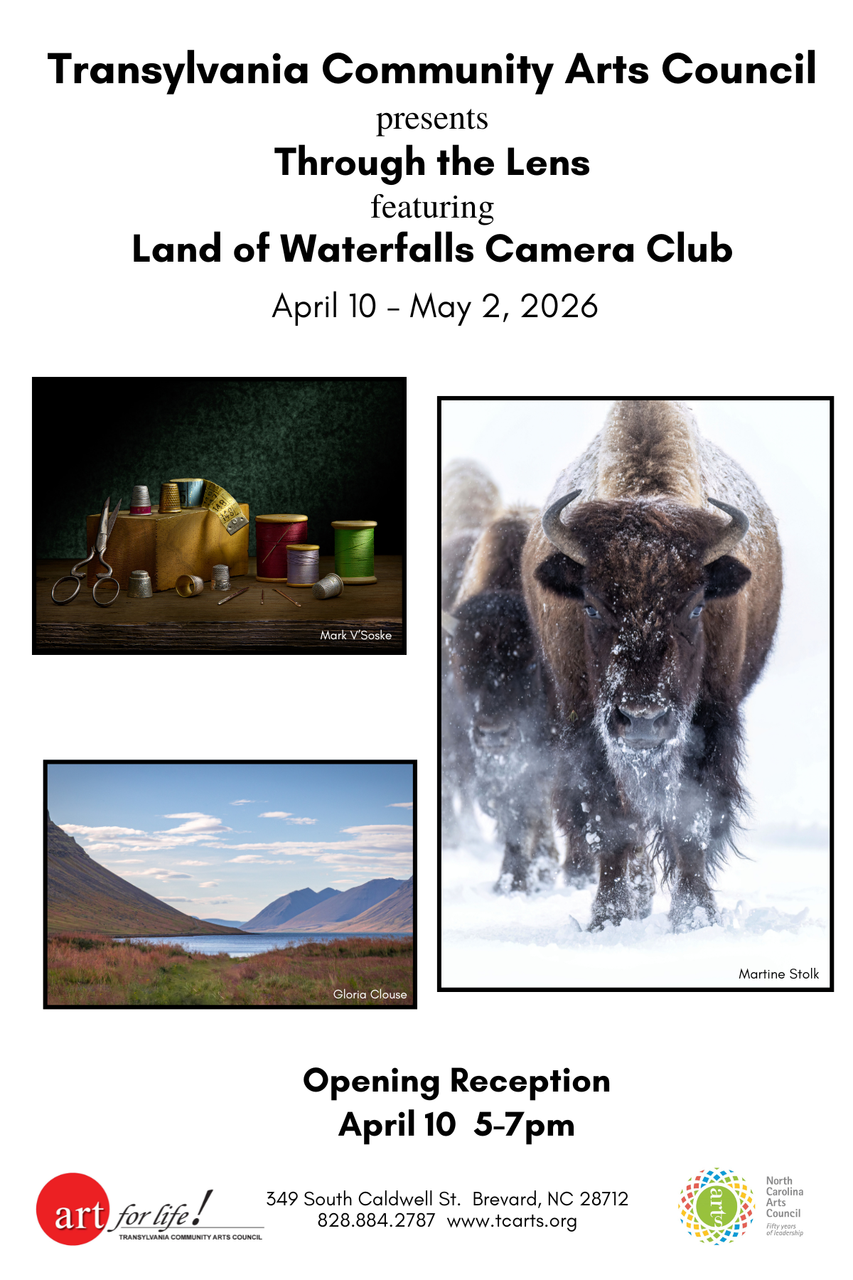 The Arts Council is pleased to announce the opening of Through the Lens, an invitational exhibition of fine art and craft featuring members of the Land of Waterfalls Camera Club and other guests.