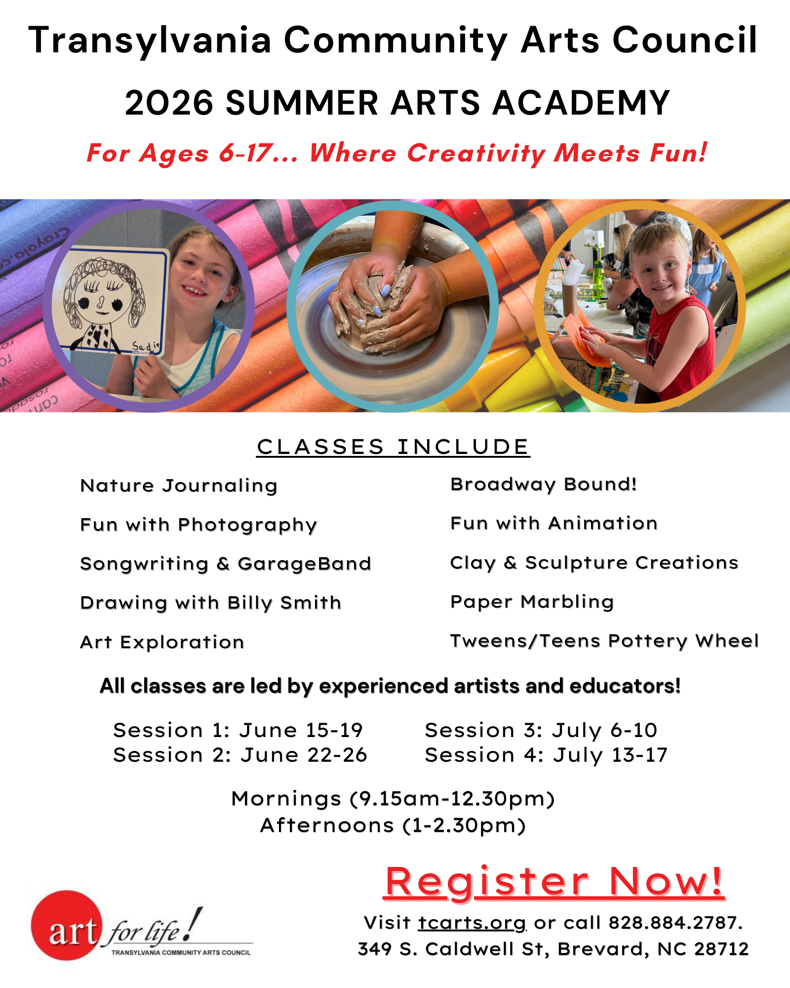 Thank you to all of our students, parents, grandparents, and others who have helped us make the Summer Arts Academy such an important part of summers in Transylvania County - and such a joy for us all!
